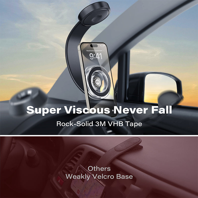 Acesta este un suport pentru telefonul auto. Suportul este fixat cu bandă 3M VHB pentru a asigura stabilitatea și a nu cădea, care este mai solid în comparație cu alte suporturi care utilizează Velcro. Suportul este proiectat să se rotească la 360 de grade, ceea ce este convenabil pentru șoferi să ajusteze unghiul telefoanelor lor mobile în timpul conducerii pentru a asigura siguranța conducerii. Materialul suportului este durabil și potrivit pentru toate tipurile de modele de mașini.