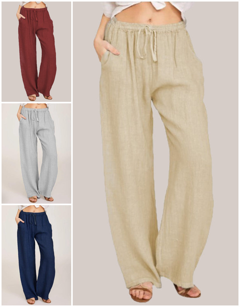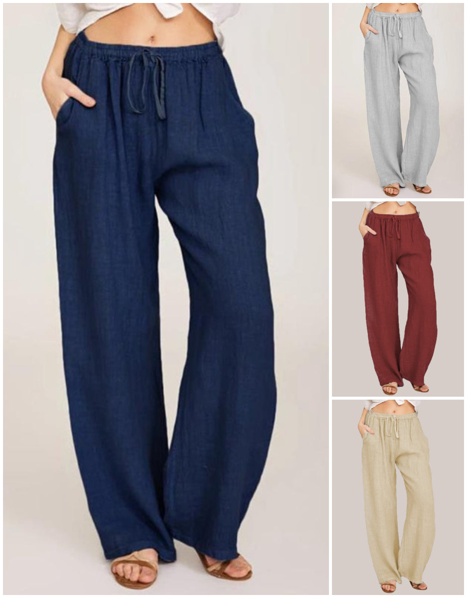 1× pantaloni lungi de vară din bumbac și in pentru femei, cu croială largă